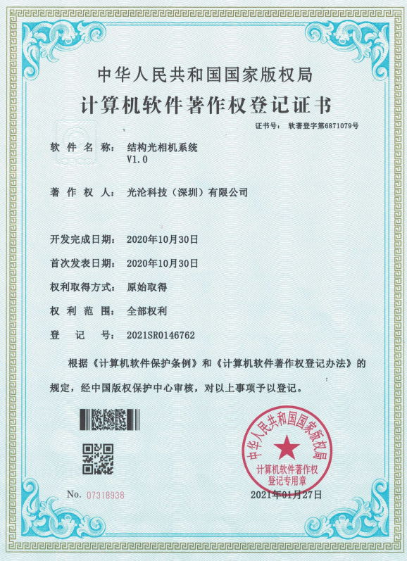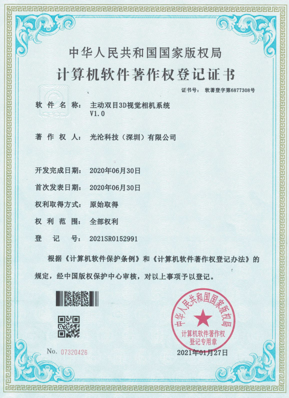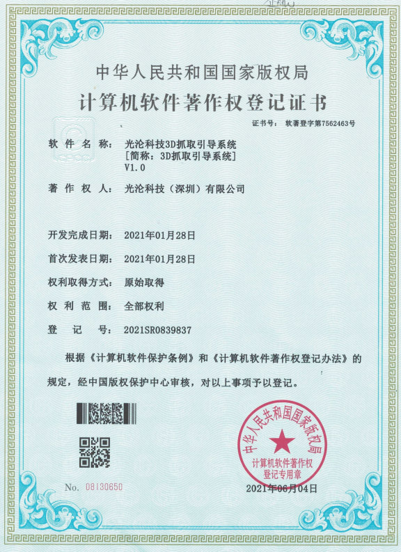 光淪科技工業(yè)機(jī)器人視覺相機(jī)獲得了多項(xiàng)國(guó)家專利及軟件著作權(quán),公司自成立以來一直堅(jiān)持自主知識(shí)產(chǎn)權(quán)研發(fā)工業(yè)3D相機(jī)!